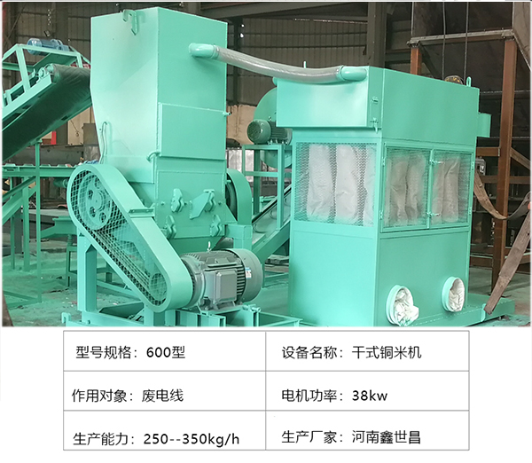 銅線破碎分離機,又稱銅米機,是一條集廢電線電纜分離為一體的干式生產(chǎn)線。可加工的原材料包括:廢汽車電路線、通信電纜、廢雜料電線、毛細線等。銅線破碎分離機特別適合加工小電線。結構新型,產(chǎn)量大,耗電少,分選率高,一次進料,多機配合,全線由PLC控制。