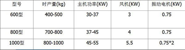 三、機(jī)組主要設(shè)備組成有五大部分組成:粉碎機(jī)、輸送機(jī)、除塵器、風(fēng)機(jī)、分選機(jī)。